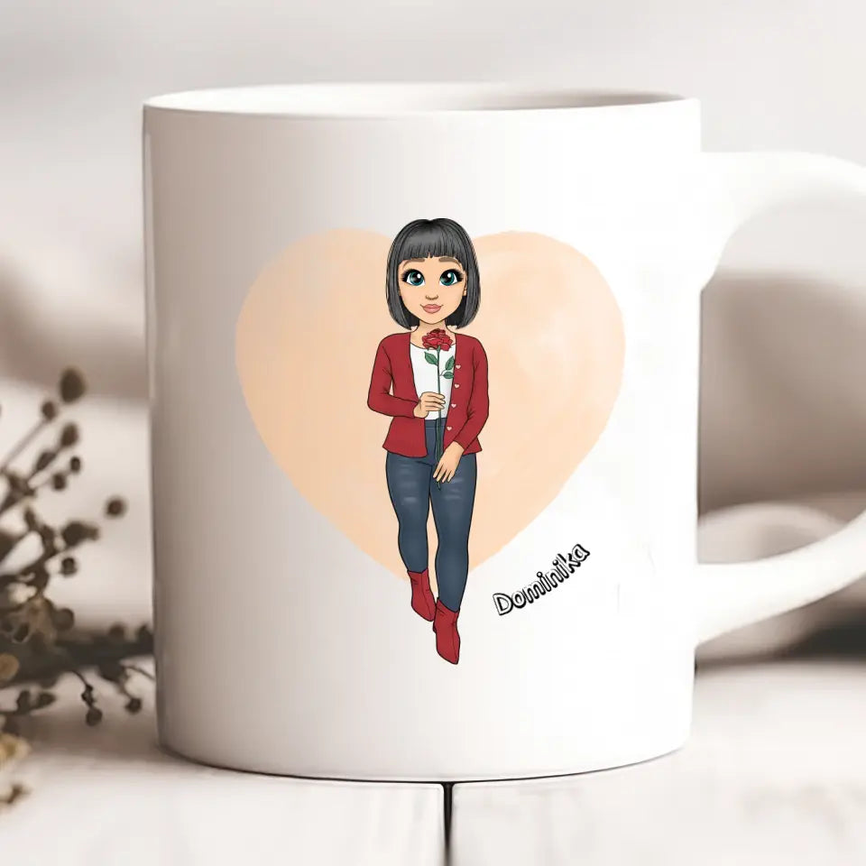 Personalizovaný hrnek je víc než jen obyčejný předmět. Je to vyjádření toho, jak moc si vážíte přítomnost přítelkyně ve Vašem životě. Hrnek si navrhnete sami. Vyberete si barvu vlasů, oblíbený styl, scenérie a především jméno nebo přezdívku Vaší přítelkyně. Můžete si také zvolit citaci na druhé straně, abyste vyjádřili své uznání slovy.