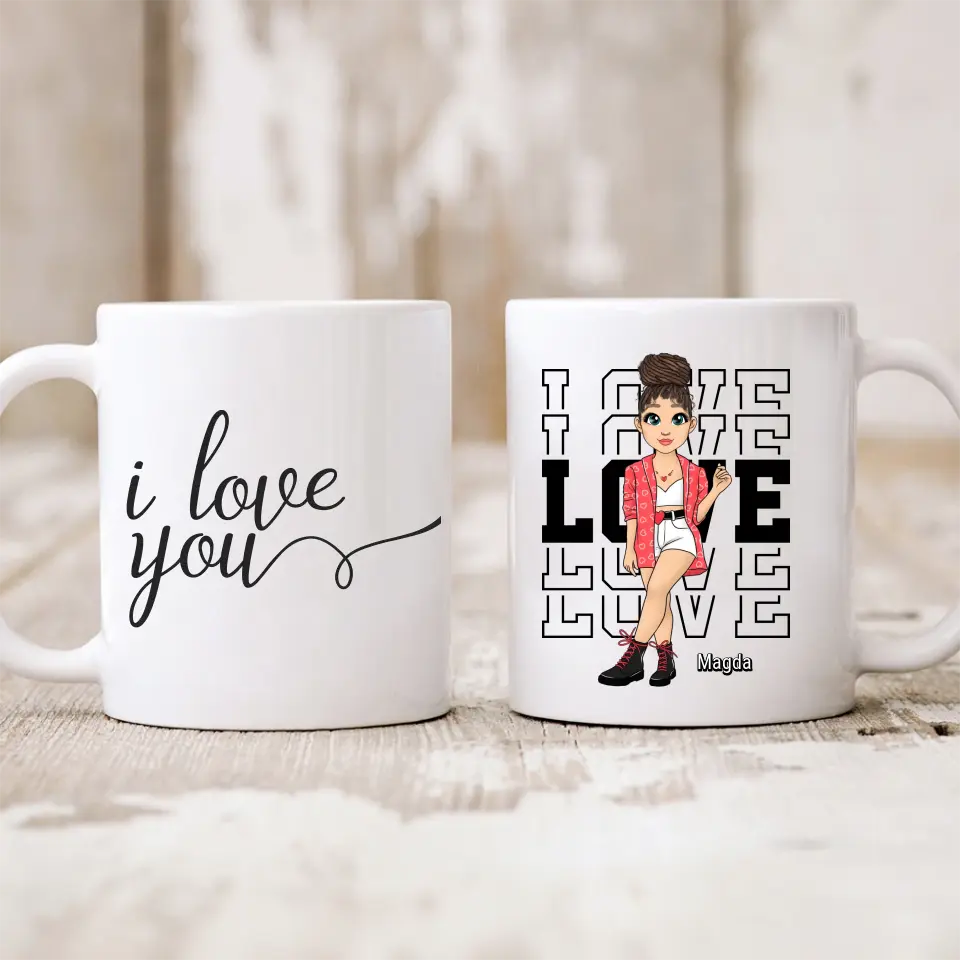 Personalizovaný hrnek je víc než jen obyčejný předmět. Je to vyjádření toho, jak moc si vážíte přítomnost přítelkyně ve Vašem životě. Hrnek si navrhnete sami. Vyberete si barvu vlasů, oblíbený styl, scenérie a především jméno nebo přezdívku Vaší přítelkyně. Můžete si také zvolit citaci na druhé straně, abyste vyjádřili své uznání slovy.