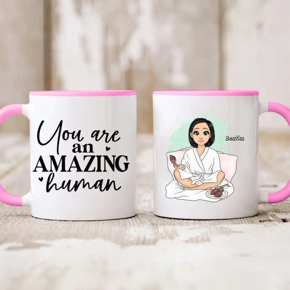 - Hrnek má po pravé straně potisk vzoru a po levé straně citát.