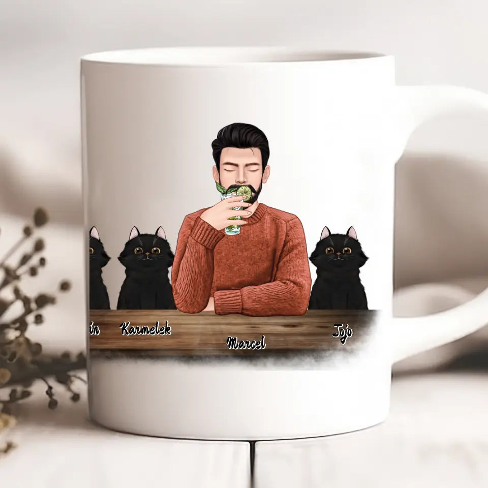Hrnek s kočkou - muž + 1-3 domácí zvířata #1