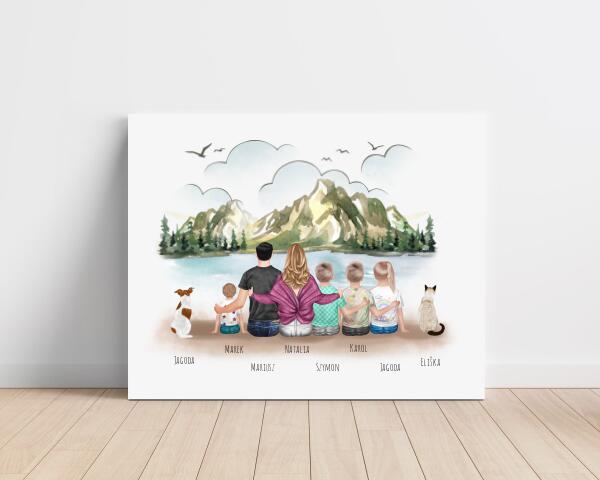 Obraz na plátně - Rodinný + 1/2 domácích mazlíčků #1