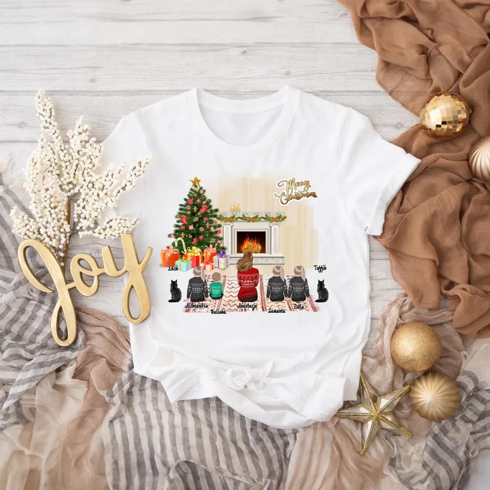 Vánoční trička pro rodinu - maminka + až 1-4 děti + 1-2 domácích mazlíčků #99